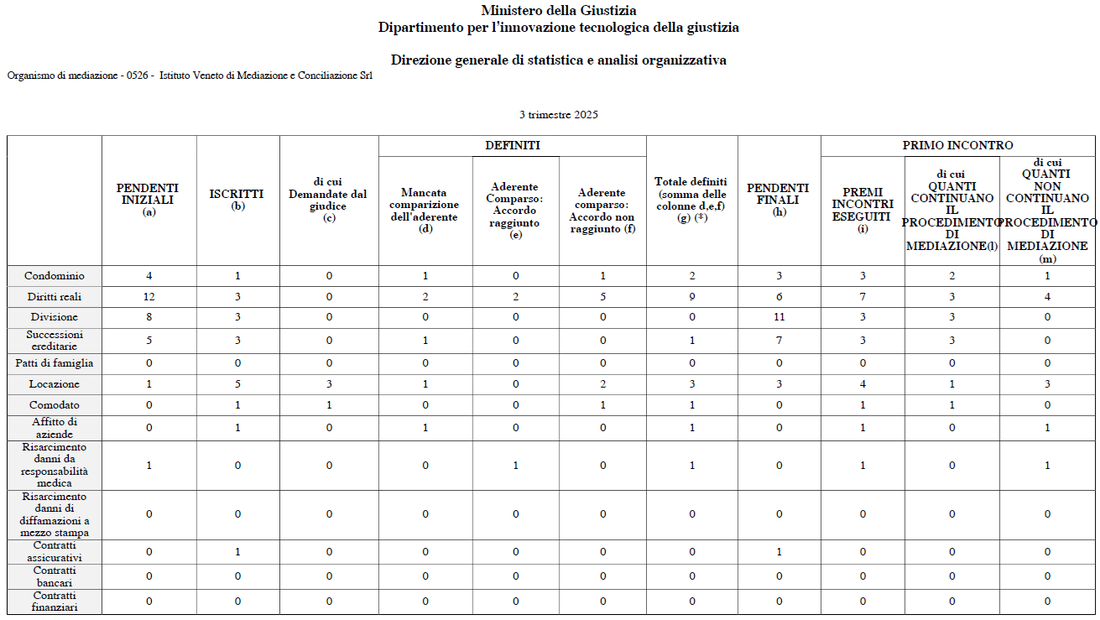 Statistiche - Istituto Veneto di mediazione e conciliazione